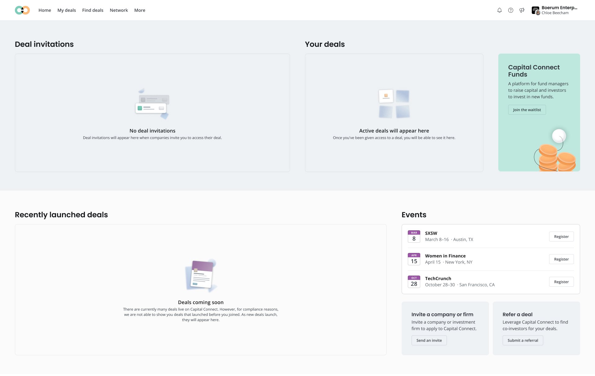 If someone becomes a member and they have never been a client of the firm then they can’t engage with any deals that were on the platform pre-onboarding. Our empty states needed to explain why and we thought it best not to drive them to do something they are unable to.